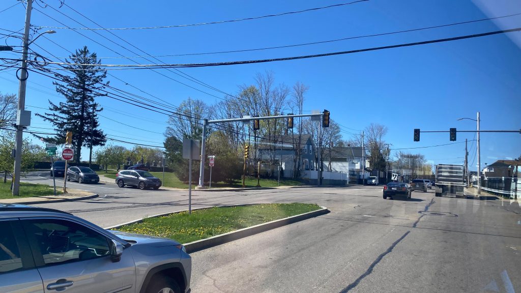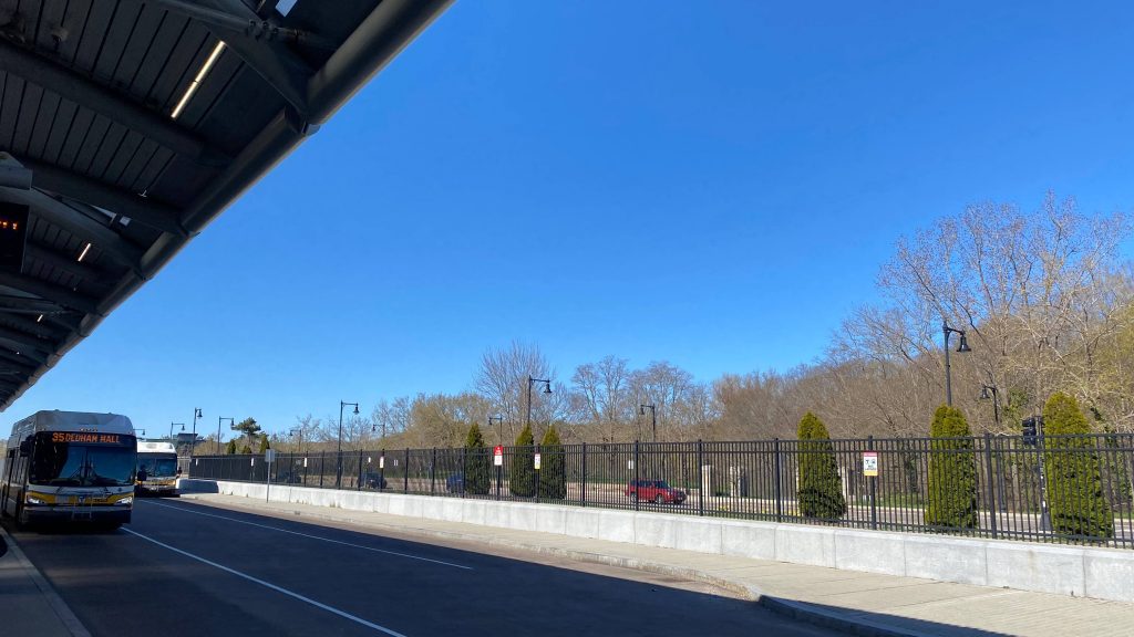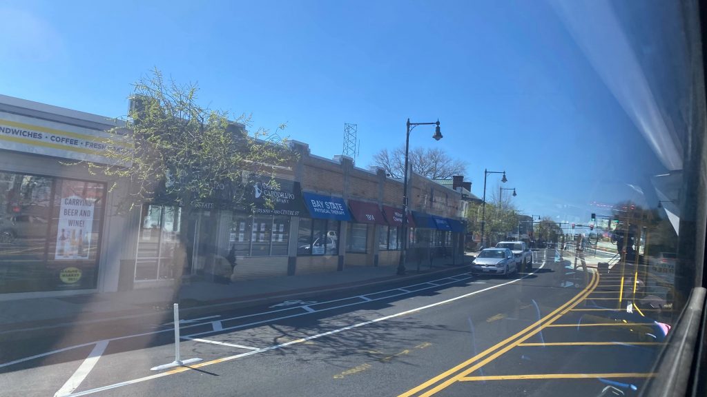 So, after using a BlueBike to Forest Hills, I boarded the 35 from the upper busway, and eventually we started moving. From here, we turned down Washington St., following a number of other bus routes including the 34E, 36, 37, and 40. All of these routes would eventually diverge. Washington St. and Roslindale Square is not as dense as other parts of the city, but it’s still a major center of activity with shopping and even a Commuter Rail station. Neat! Eventually, continuing down Belgrade Ave., we continued following the 36 and 37 as well as the Needham Line, and eventually most of the bus emptied out along here. In a way, my experience proves a good point as to why the Needham Line should be converted to an Orange Line extension. Don’t get me wrong, I feel an all/nothing approach is probably better anyways, but a split approach (Newton Highlands-Hersey converted to Green Line, Forest Hills-West Roxbury converted to Orange Line, with West Roxbury-Hersey becoming a shuttle trolley) isn’t bad either. I digress. It’s mostly all lined with businesses until reaching the area near LaGrange St. and West Roxbury Station. We turned down and it became a quiet neighborhood, and going further from there, turning down Stimson St., it’s still residential. Eventually, however, we reached Washington St., quickly turned down for a bit, and deviated into the Dedham Mall for the end of the run.