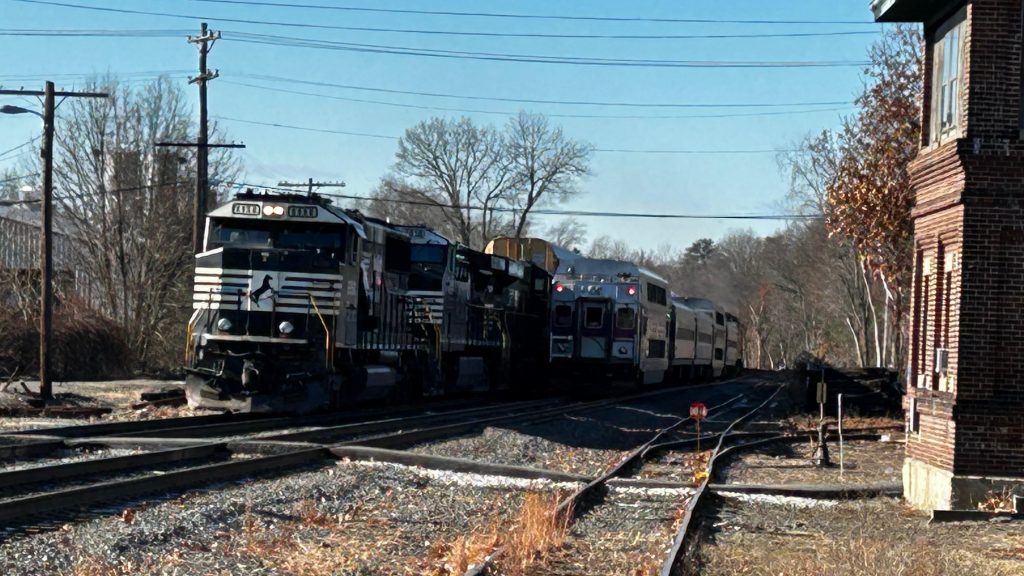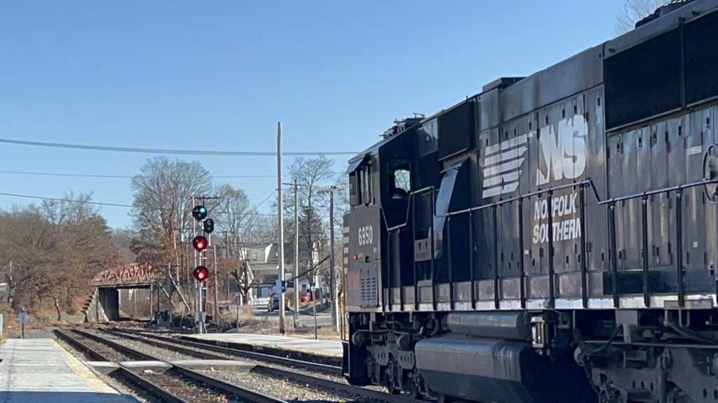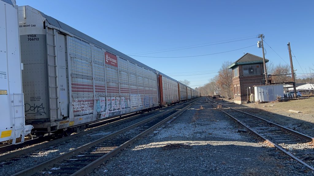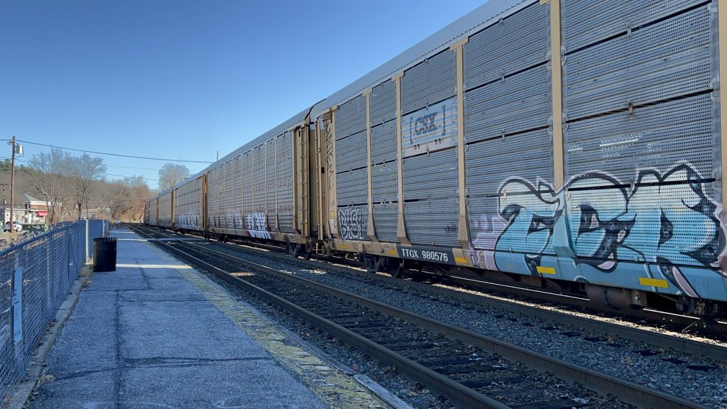 Ayer, in particular, has a reputation among Boston-area railfans – and, in a way, is a rite of passage. It’s a major freight rail hub, and is the most likely place to see freight trains in MBTA territory. That is not to say you can’t see them elsewhere – you absolutely can! I’ve personally seen CSX running on the Northeast Corridor, the outer Haverhill Line, and the Franklin Line. I digress though. The station itself is pretty modest, if not ADA accessible – as there are two low level platforms, a grade crossing between them, a red dot matrix sign on the inbound platform, seating on both sides, a nice-ish shelter, a bus shelter (both on the inbound side, naturally), and even a modest amount of parking. The station is also pretty much in Ayer’s town center, which is nice. There’s also a parking garage operated and managed by MART a little ways away. As for bus connections, however, there really aren’t any. Wait, what’s that? A horse racing down the track? What?! HOLY FUCKING SHIT, A NORFOLK SOUTHERN LOCOMOTIVE TRIO COUPLING TO A CRAPTON OF AUTORACKS?! Of course, I wasn’t the only one here, as a number of railfans had the same idea on the day I was out here. But, that wasn’t even the only catch! Later, I’d also see a CSX train taking the wye to head south towards Devens and Harvard. Unfortunately, it ended up becoming disabled, and I guess it broke the signaling system and switches (forcing the Keolis conductor on my train to Boston to hand-throw it), but hey, it was still cool to see!