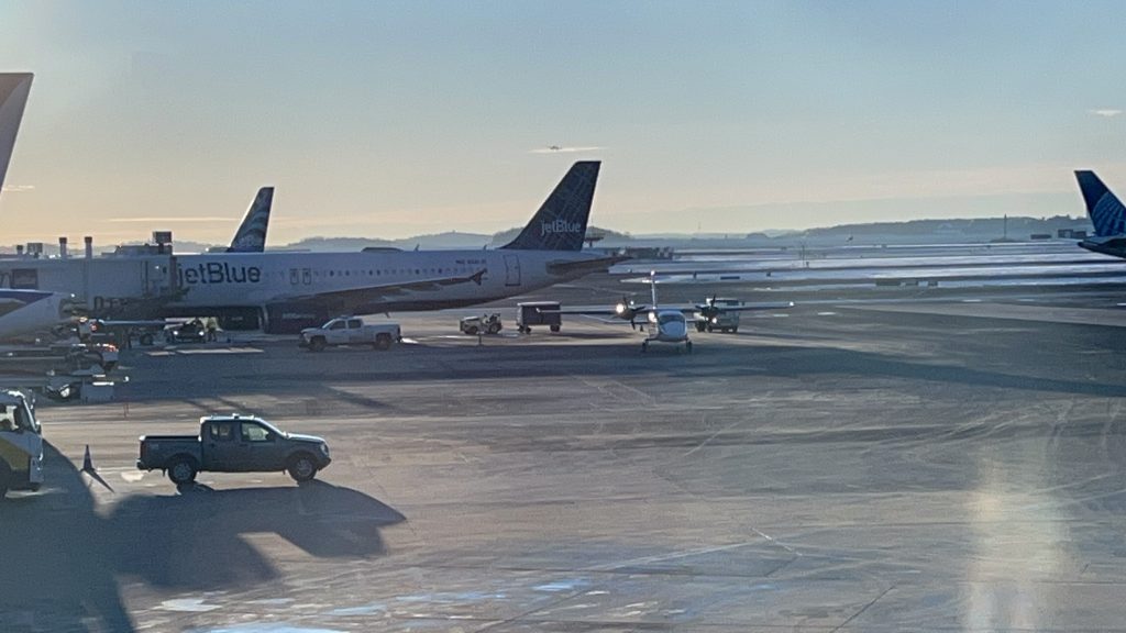 Okay, so Feb. 10th rolled around, seemingly taking an eternity, and it was the big day. Woke up at 2:30, Ubered to Providence, and took the first train of the morning out. All was normal until, of course, in typical fashion whenever I go to NYC, something goes horrifically wrong and I narrowly avoid trouble. In this case, I avoided a derailment in the Readville yard that caused issues galore. I was able to take the Silver Line out to Logan Airport easily. I forgot where to get off so I just defaulted to Terminal B as a failsafe, got off, looked at the rather easy to find wayfinding and found I had to go to C. Surprisingly, here, I also discovered that Massport has countdown clocks for both the SL1 and their own shuttles. Neat! So, I hauled my ass over to Term. C, and printed out my ticket. FINALLY, they let me print it out. I’m not sure why I couldn’t print it out on Jan. 24th, but whatever. I got this, and then the first of two major problem points that could potentially derail everything: the TSA. I didn’t know what I was doing going into this, and there were multiple lines. But, thankfully, the TSA agent was ushering people in and pointed me to the right line (even if I was still nervous that I did not, in fact, get in the right line as it was completely unmarked). I confirmed everything they were saying, did as needed, and was on my way. Surprisingly, it was quick, and the TSA agents were….actually helpful in making sure I was doing the right thing. I know, ACAB and all that, and I still hold on to that principle, but recognition to people being helpful is an important thing too. With that, shoutout to the TSA agents at Logan for actually being helpful and professional. But, still, ACAB. Unfortunately, the problem point was actually something I did NOT anticipate.