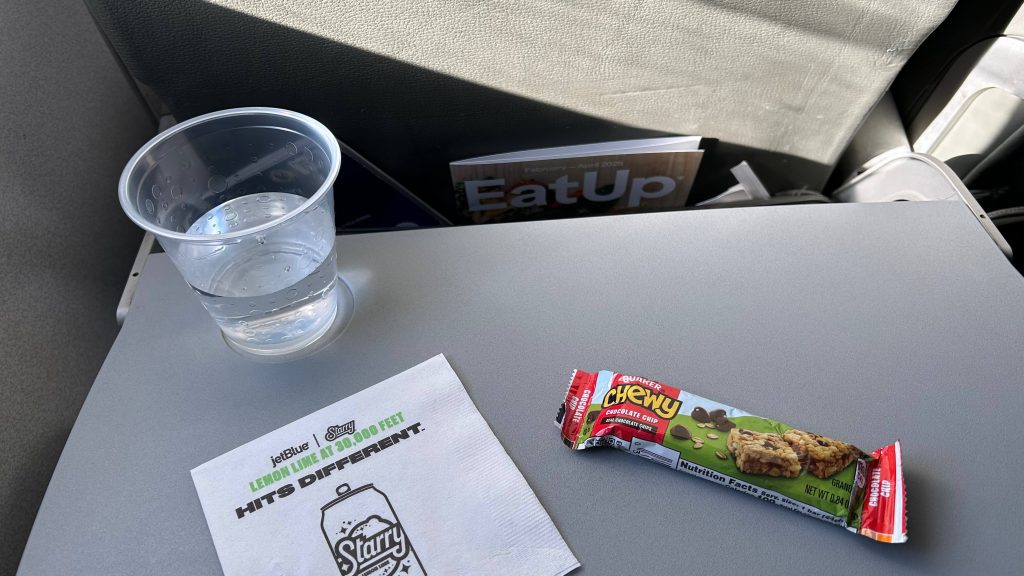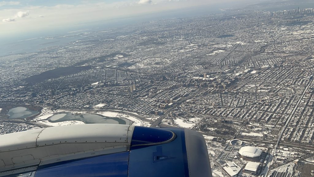 We WENT AIRBORN! WOAH! I looked down, actually in awe, “woah”, this……..was something. It’s like someone coded the world as a Mode 7 Super NES game. For those reading that don’t know what mode 7 is on the Super NES, the best example of it is Super Mario Kart, so I suggest looking at gameplay of that game. But, it felt like a rollercoaster and getting a boosted start in Mario Kart. I actually got a bit of a headache, which nobody warned me about. So, that sucked. Also annoyingly, turns out planes are faraday cages. No cell service whatsoever! I think top speed was around 300 miles an hour or something, and for you plane foamers, we were at about 2 miles up the entire time. It, however, was not exactly scenic as I couldn’t discern anything clearly. Cafe service was…..anemic, with an option of either water or coffee, and plantain chips or a granola bar. I opted for water and a granola bar, naturally. I would’ve personally preferred a self-serve option here, though, so I could get something at my leisurely pace without worrying if I need something later. Annoyed by the fact I was in a faraday cage, I tried using the wifi, which…….just didn’t work. Oh well. We eventually came in onto Laguardia Airport, which required going in a 270 degree circle around the city and into New Jersey briefly, rapidly descending, into a very rough landing. I’m not sure if this is because the operator is new or what, but they really oughta be better. Overall though, not bad for a first plane trip.