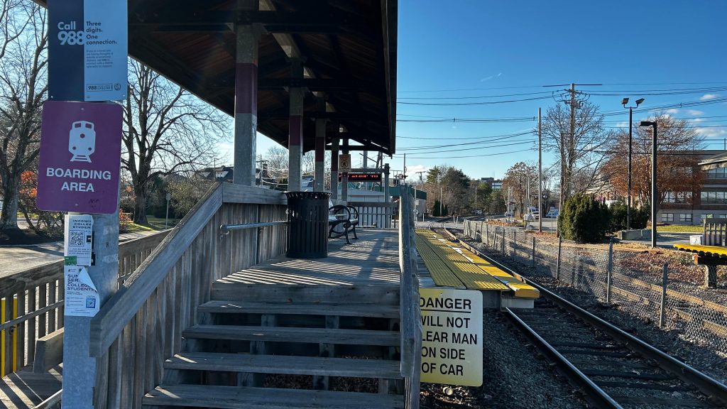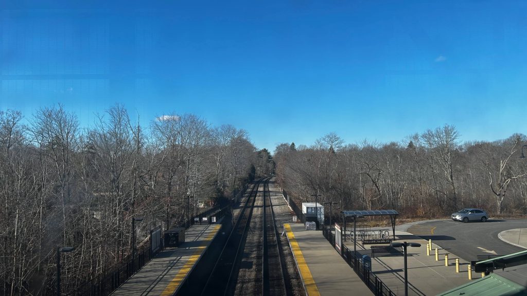 The station, much like Waverley, is a pair of low-level and rather inaccessible platforms located on the Fitchburg Line. However, unlike Waverley, it’s not in a trench and theoretically could be made accessible with a lift and ramp on each side. However, unlike Waverley, negotiating boarding/alighting here involves what amounts to a sobriety test as the train is VERY, VERY TILTED. The outbound platform has fuck all for anything aside from a couple wastebaskets. That’s right – you don’t even get BENCHES heading outbound. Granted, officially, you don’t get anything inbound either, but AT LEAST you get the Lions Club staircase as a makeshift shelter! Speaking of, the Lions Club has taken on residence in the old station house – and as of me being here, was holding a Christmas tree sale. Neat! There’s also buses, but none of them stop directly at the station and require a walk that’s about 3-5 minutes and some j-walking. Why a bus stop can’t be located at Royal Road in front of the Lions Club is beyond me. Hmm…I wonder if this connection issue changes with the BNRD?