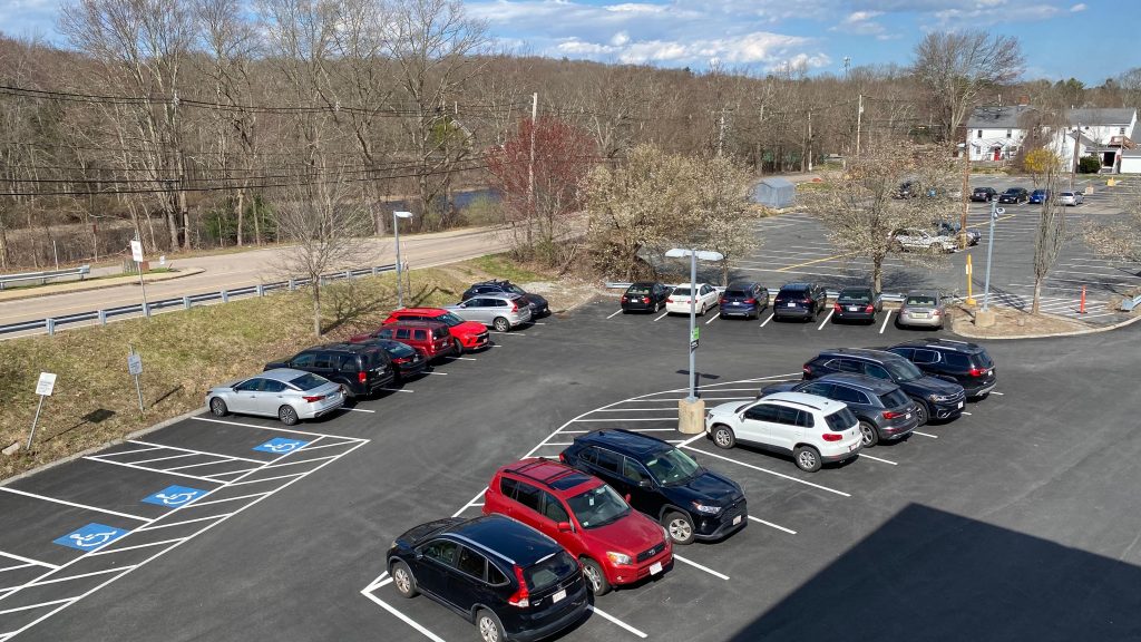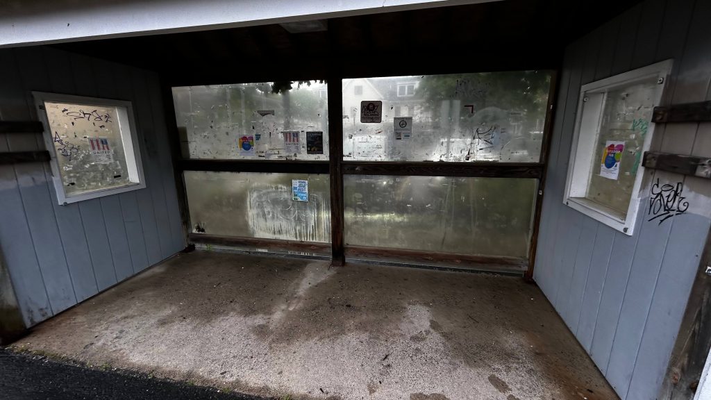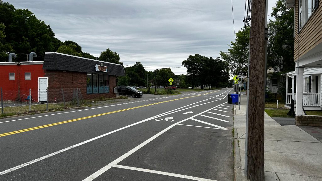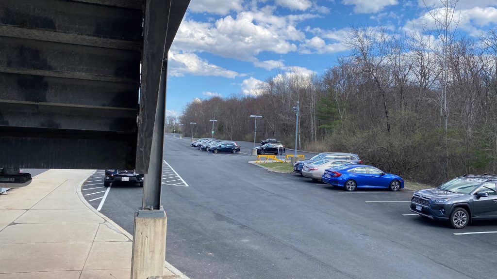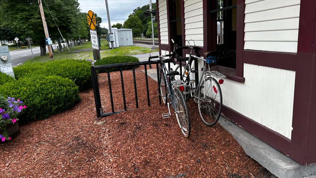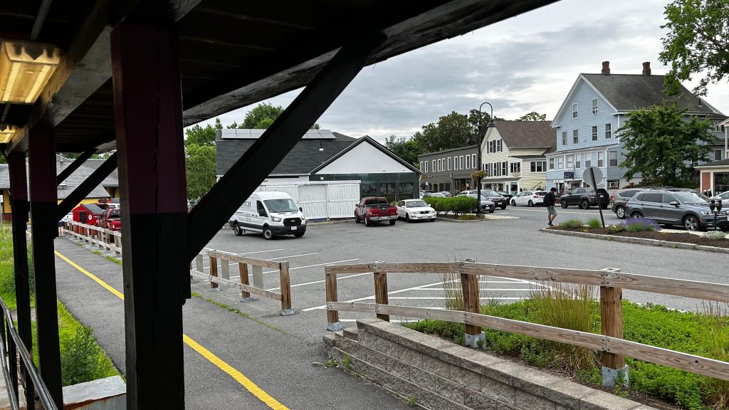 So, getting off the train, they let us off in the middle of the street because that’s where the door was. The total length of the platform, including the street? About 100 feet or so. Yeah, it really isn’t long. There’s also a slab of concrete for boarding and alighting outbound trains. On the platform, you have a bench, a wheelchair lift (making this accessible technically, contrary to the system map!), and a small shelter. The map is outdated here, but for the Fitchburg Line it’s pretty accurate. The shelter, on the other hand, is pretty sad, with windows not having glass. Parking is also small but good enough given the relatively low ridership of the station. The station’s also pretty close to the town center (or, at least, the closest thing that can be considered “the town center”), and there’s even some semblance of cycling infra – with painted bicycle lanes. While it could be better, I have to give credit for effort being put in here. Good for you, Town of Shirley! Though, for cycling infra, I’d have to say that physical separation is better. Maybe a physically separated bike lane from around here to Ayer and Leominster? Either way, this station definitely has the vibes, but overall it’s meh.