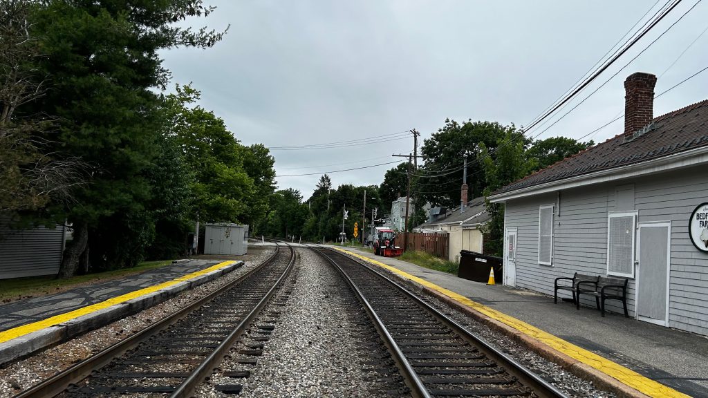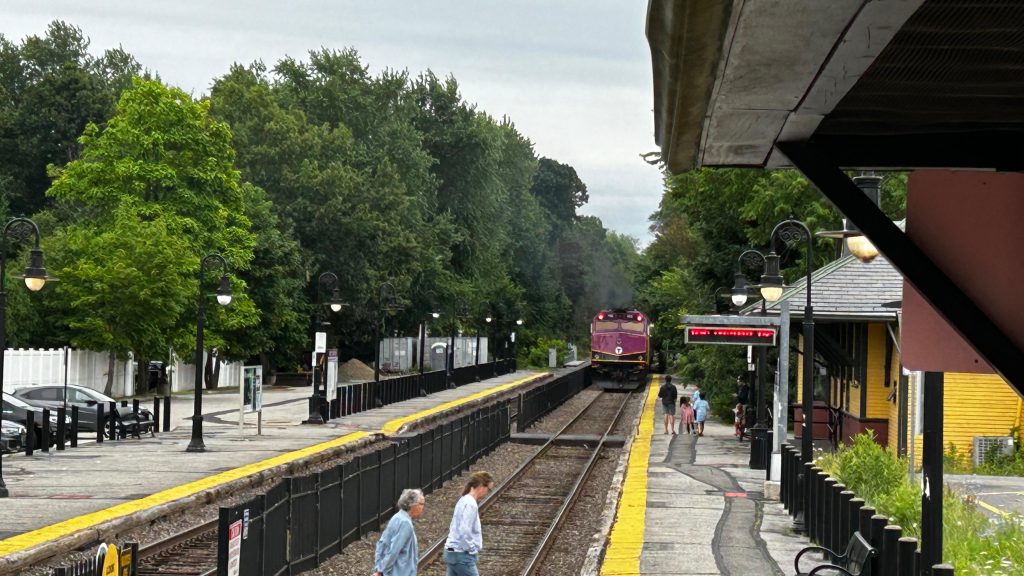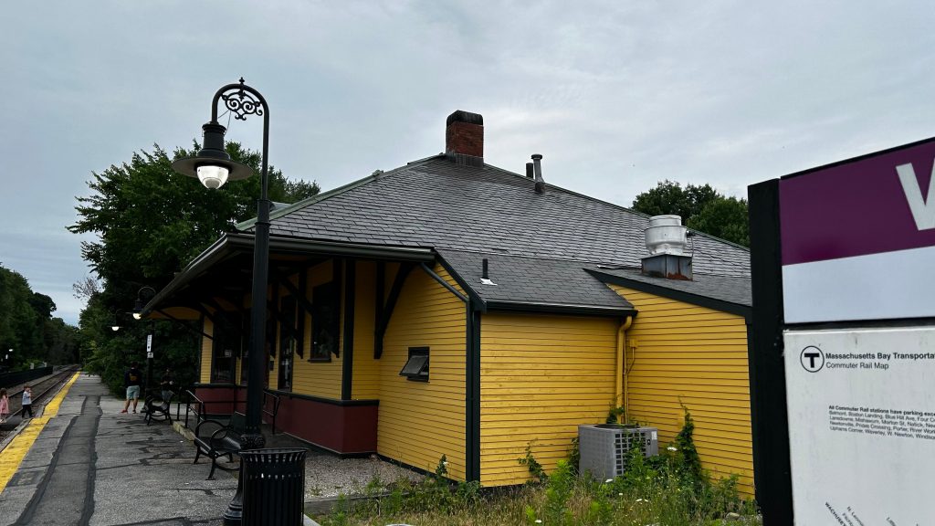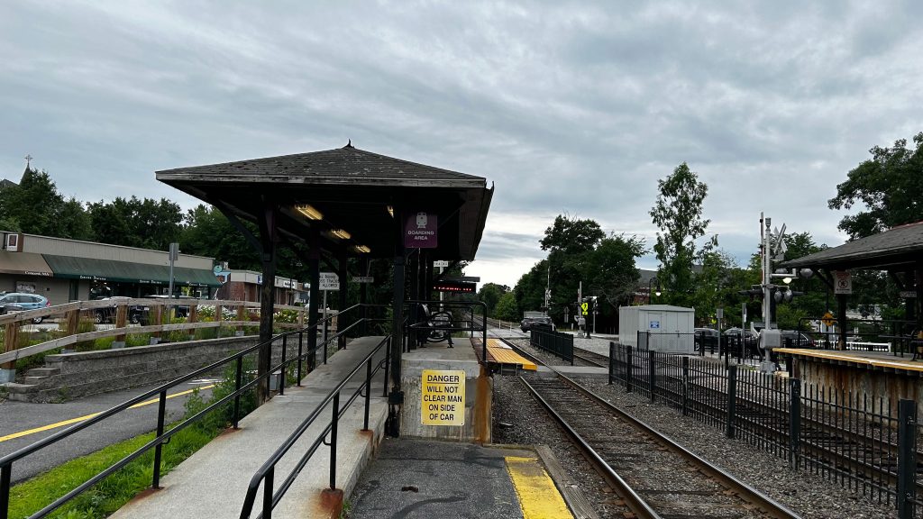 First off, you have a mini-high where the trains are board. Woah, immediately that’s an improvement from most of the line, where the platforms are rinky-dinky shitty low-level platforms. YAY! And, there’s shelter! Lining the platforms are benches, wastebaskets, and on the inbound side, a red dot matrix sign. There’s also Helvetica bold signage as expected. There is also parking. Furthermore, there’s history, a bubbler- er, sorry, a water fountain (forgot this isn’t Rhode Island!), and even a nice station house. There’s also a bike path that runs all the way to Sudbury and Lowell from here. Neat! This station’s actually pretty good! Would be nice for railfanning if there wasn’t a quiet zone though…
