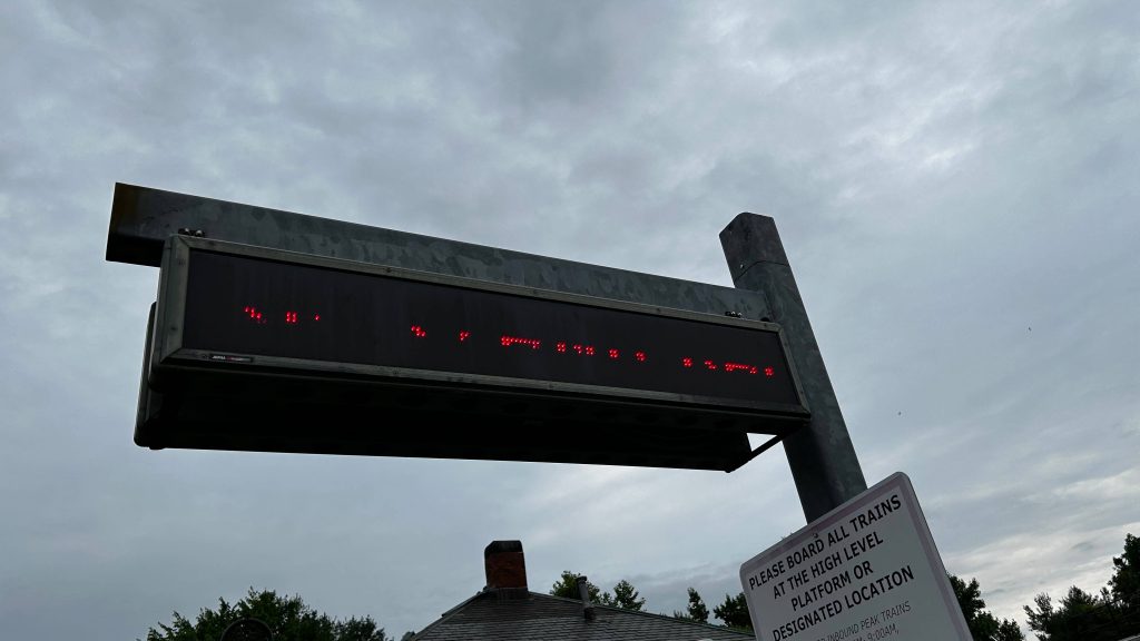 So, I was the first person to get off a train here, at the unholy hour of 4:30ish AM. Yep! THAT early. The station, however, is pretty bogstandard. While you don’t have a way to cross to the other side, all trains that serve this station stops on the outbound platform. The station itself is well-lit, and the mini-high has a bench for waiting. The low-level platform is fairly long, but usually only one door opens here. The tactile strip is inconsistently placed, weirdly enough. Not sure what’s up with that. There’s a decent amount of parking, a Market Basket nearby, RIPTA and GATRA buses, and even a new departure board alongside the ’80s-era red dot matrix warning signs. This feels cursed. That aside, you have Newport Avenue overhead and I-95 a stone’s throw away. As for railfanning, it’s alright, all things considered.