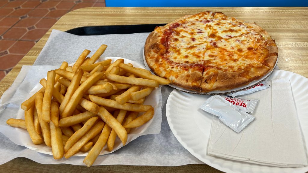 Before I left, however, I decided to pick up lunch at Nick’s Pizza. Fries were crunchy and salty, and the pizza was pretty good, all things considered. Overall, I give it a passing grade.