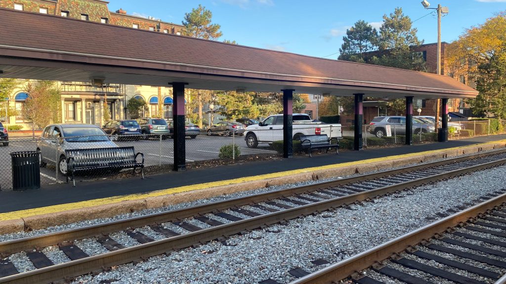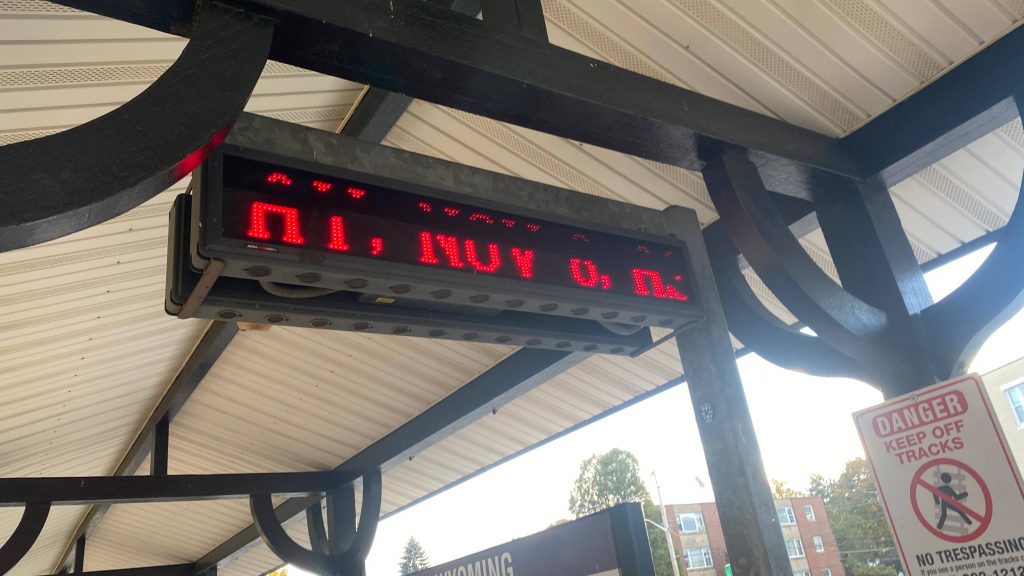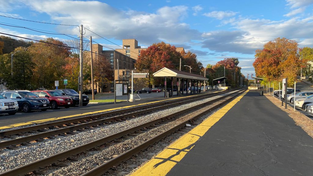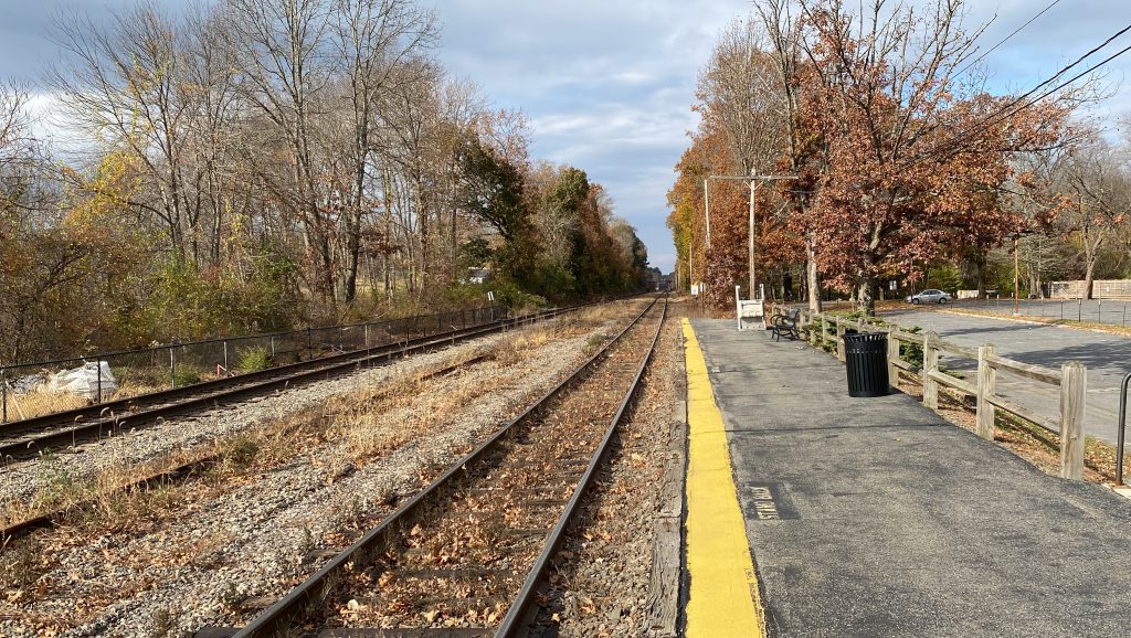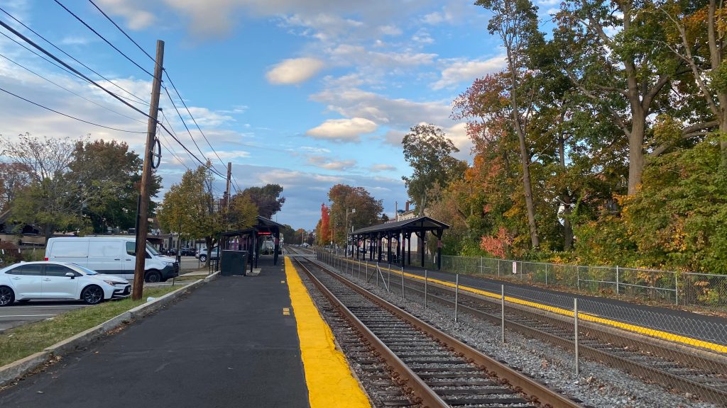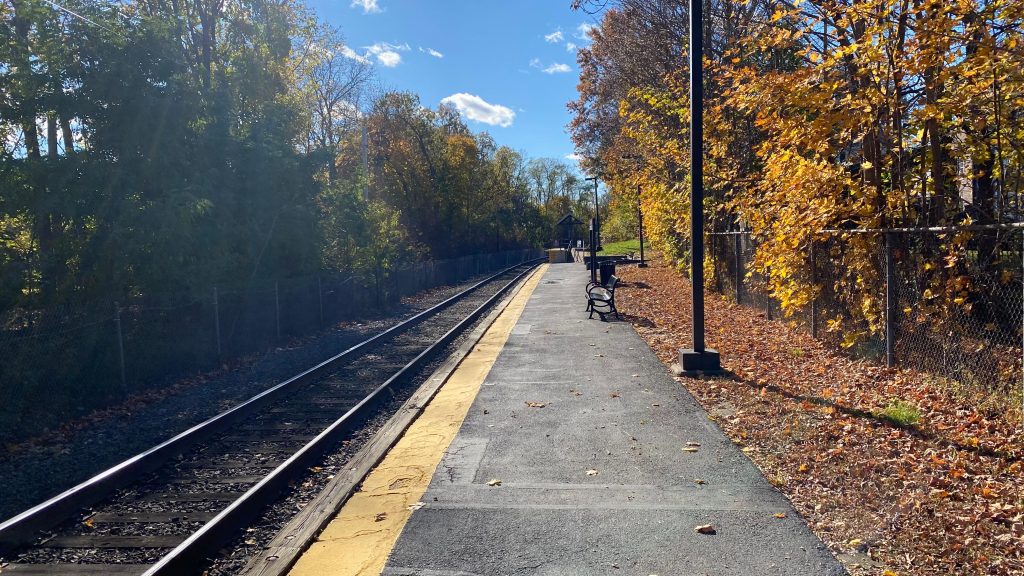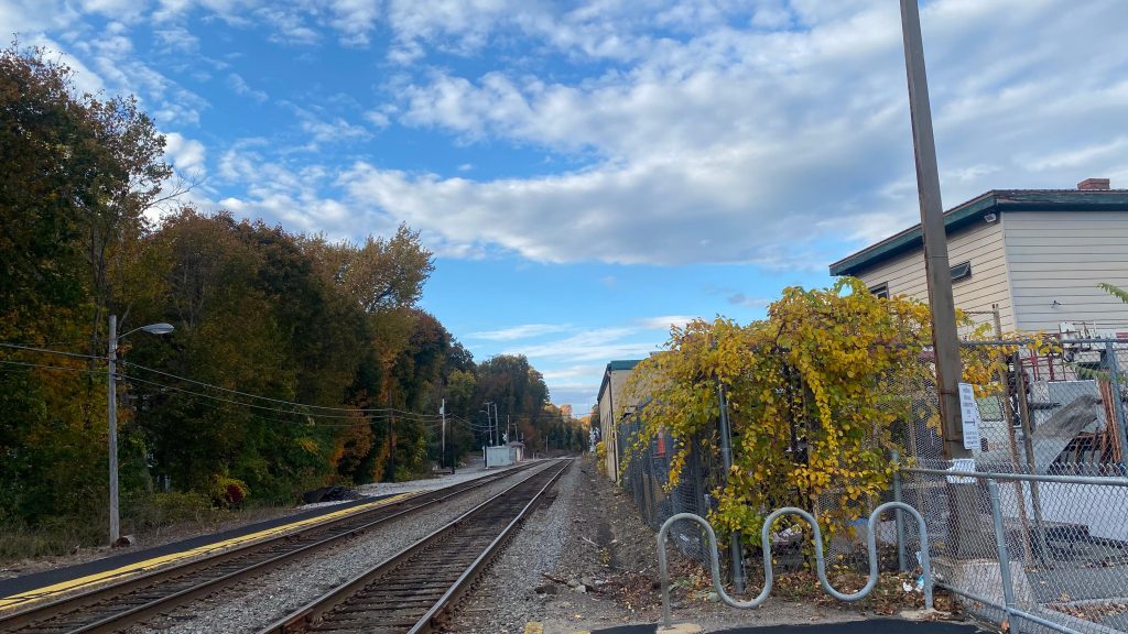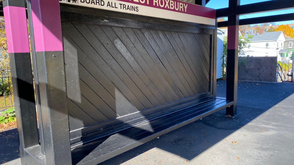 So, West Roxbury is actually quite a pleasant station. You can get some nice train shots here, as the leaves turn color. You have benches and wastebaskets, along with red dot matrix signage. While you don’t have seating on the mini-high, you do have a sheltered area towards the far end of the low-level platform. There’s even bicycle infrastructure present! Neat! You also have plenty of parking to go around as well. Beyond all this, you have a ballfield nearby and Millennium Park isn’t too far away either. Overall, a pretty nice little station with little in the way of flaws outside of line-wide issues.