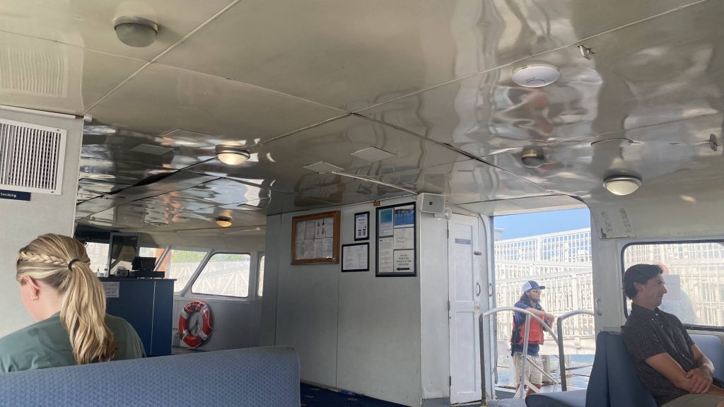 So, the route is pretty short, going from Lewis Wharf in East Boston, to Long Wharf in downtown. The boat itself was fairly comfortable for what, I presume, is commuter-grade equipment. I’ve also heard you can stand outside, but since it was raining when I did this (or, rather, it just stopped), they didn’t allow anyone to board outside. Nevertheless, after taking some time to reverse, we were on our way and, soon enough, made it to downtown in about 10 minutes, and I was on my merry way to South Station to meet up with June.