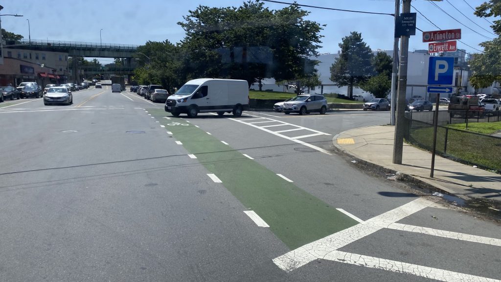 TURNING!They announced a Commuter Rail connection here. I don’t see a Commuter Rail platform.I spy a silver lining!Some shops on Broadway!A colorful side streetAHT.We’ll get to you eventually, route 111!The Tobin Bridge from afar!Eastie townhouses!The library!Yet another Central Square! No Red Line connection though.Eww, cars!End of the route!