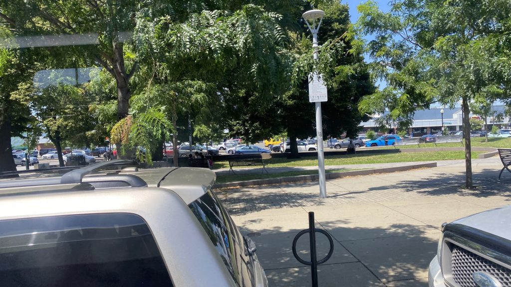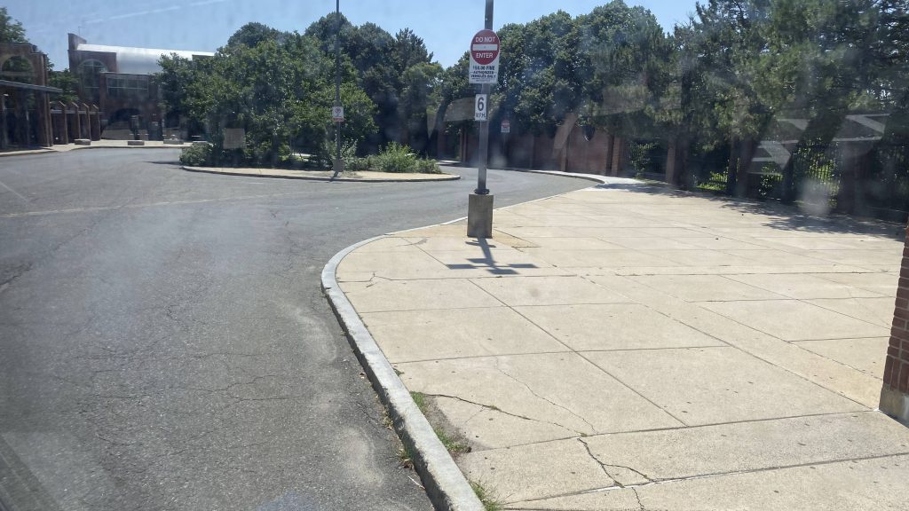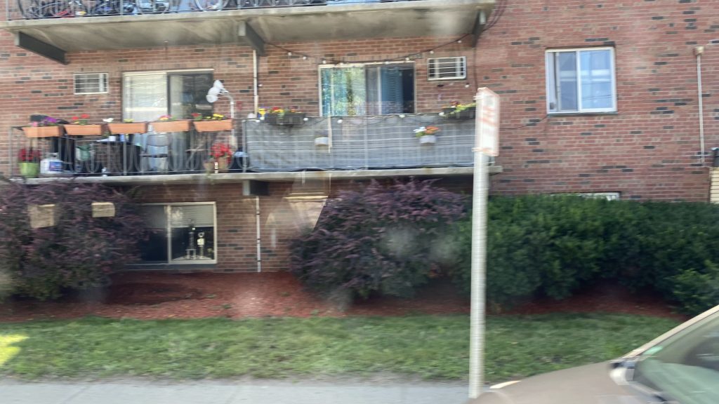 NOPE! The route then continues back, up Boardman Street and towards US-1A, turns down US-1A, and does a loop around the very residential Orient Heights neighborhood, serving some housing projects and, most notably, the shrine of Madonna, Queen of the Universe (yes, it’s actually called that!). I elected to get off the bus at the Madonna Cross and walk the rest of the way (although I ended at Suffolk Downs since Google insisted on steep unpaved roads). There WAS, however, one issue I observed with this.