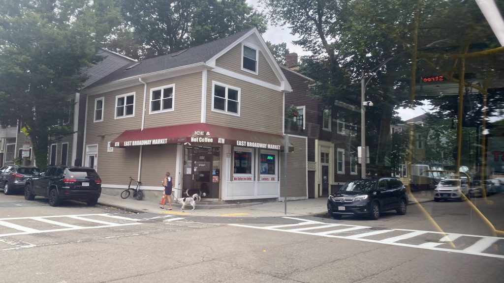 What a cute little market.San Francisco lite?Density!D Street!Apartments!Southampton bus yard!Broadway Station. Red Line and bus connection.NOT IN SERVICE?!Washington Street?!Looks fancy-ish!One way!Welcome to Copley Square!