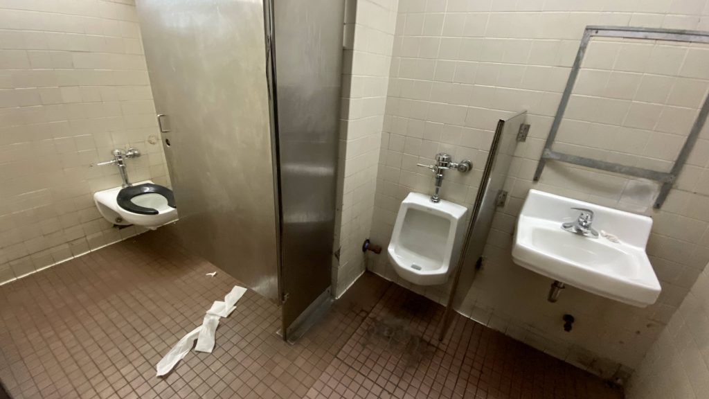 So, the platform feels a little dark, but it doesn’t at least suffer from Back Bay syndrome as there’s LED lights everywhere. Furthermore, they have hostile benches and wastebaskets, and HISTORY can be found down here along with art! Neat! Going up the elevator (no piss!), the mezzanine is better-lit, and restrooms can be found here! And, yes, they were unlocked. Unfortunately, however…