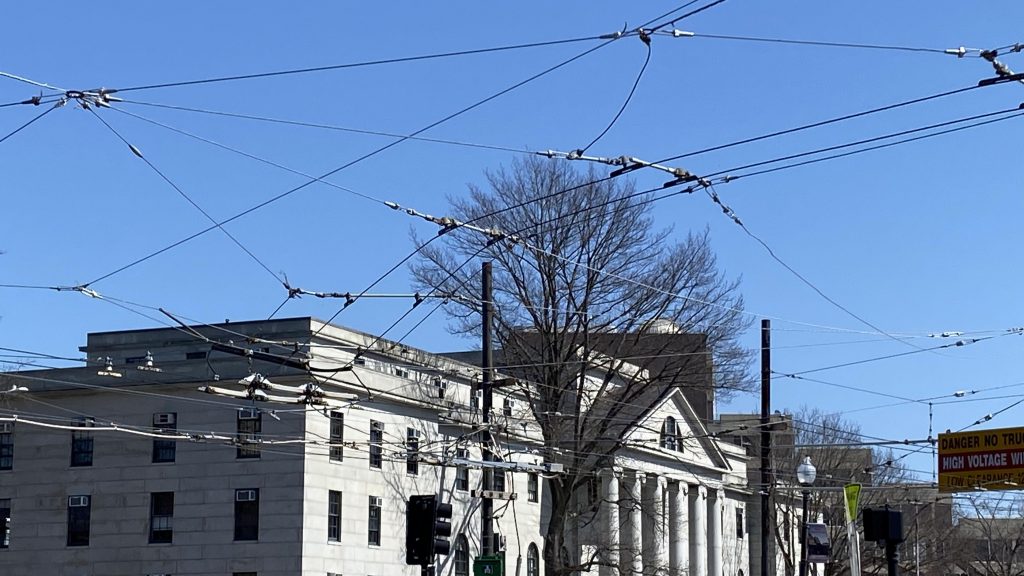 It turns out, there’s an answer to that. About a year ago (as of me writing this), the MBTA killed off their catenary-powered bus network up here, which primarily used the lower busway. Now, many people got salty over this, however I haven’t had much in the way of experience on those Neoplans and if the Silver Line is any indication (of which I’m far more familiar with), it’s probably a good thing they’re killing off catenary-powered buses. They’re old, dated, loud, slow, and can’t even maneuver around obstacles. Furthermore, retracting the pantographs take so inhumanely long that even IF there were a speed benefit like on trains, they’d be nullified the instant the pantographs need to be retracted. Something obstructing the road? Nope, can’t go around them! Now, unlike the Neoplans on the Silver Line, these buses (for whatever reason) boarded on the LEFT, which means YES, YOU COULD VERY EASILY FARE EVADE. WHY WOULD THEY HAVE BOARDING ON THE LEFT?! WHY, WHEN THAT SPACE COULD BE USED FOR A FEW EXTRA SEATS?! As for the upper busway, diesel underwire! Yeah, I absolutely hate catenary and how horribly inefficient they are for buses, but diesel underwire is STILL a far bigger crime! YES, THEY RUN DIESEL IN HERE! Apparently CNG is banned though, something about the catenaries still being live and the risk of going kablooay.