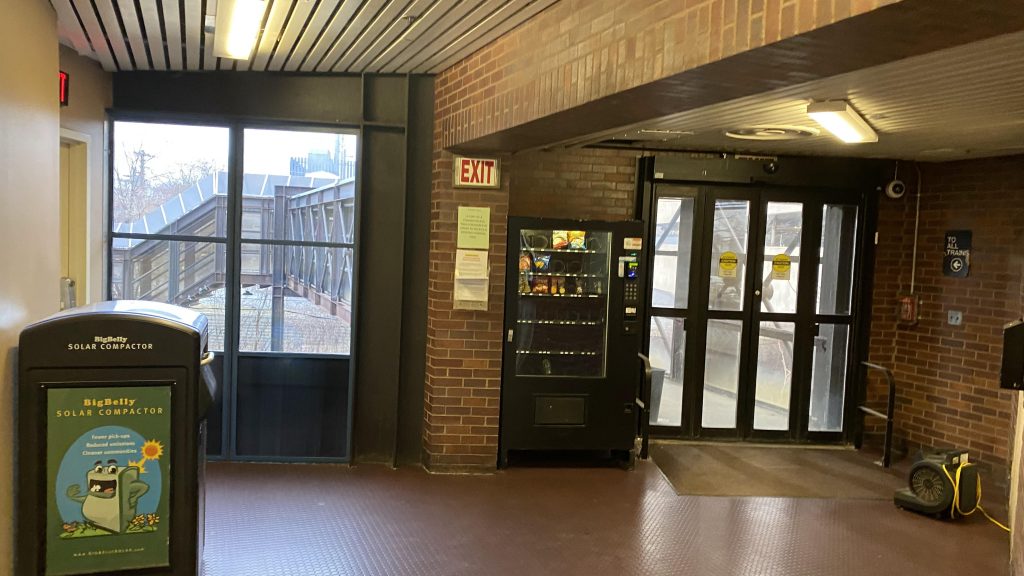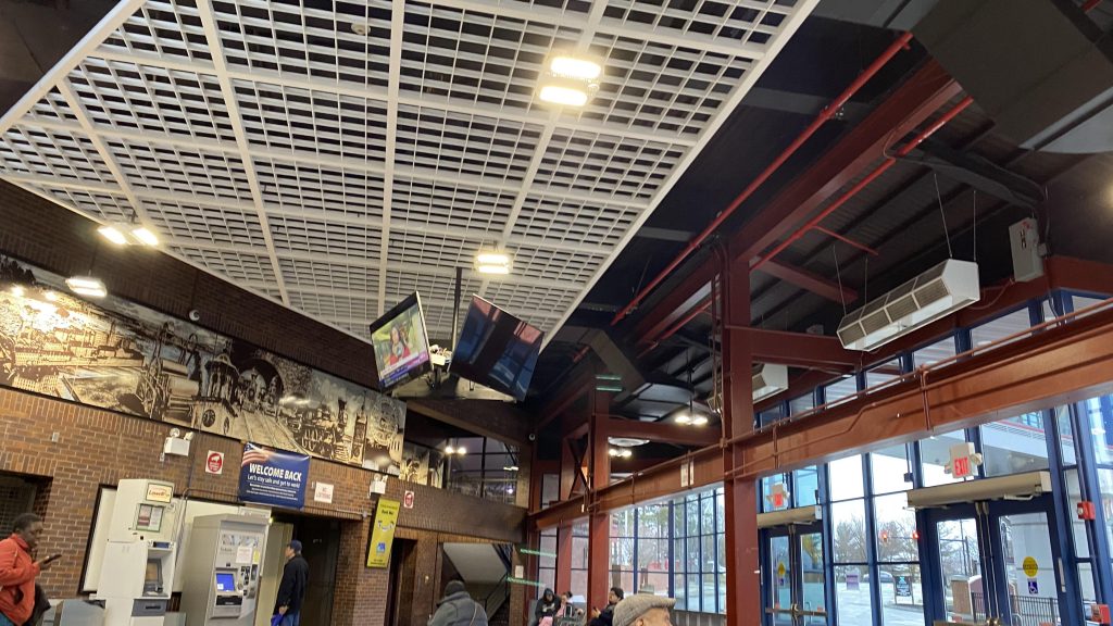 The indoor waiting area was warm, and is alright. You have NECN on the television inside, along with a 7 segment clock display and brochures. Also, there’s restrooms here. And, HOLY SHIT A CHARLIECARD MACHINE?! Yeah, that’s REALLY rare for outside Boston! In here, you can also take the stairs or elevator up to the 3rd floor, where access to the Commuter Rail can be had.