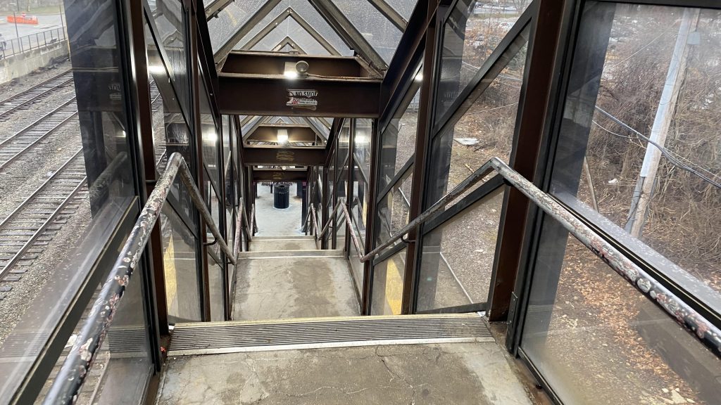 The bad: EVERYTHING ELSE, WHY IS IT ALL LOW LEVEL, THE GRADE CROSSING IS TOO DANGEROUS, THE OUTBOUND SIDE BARELY HAS ANY AMENITIES, AND IT’S NOT EVEN ACCESSIBLE! THE CROSSING EVEN NEEDS TO BE FLAGGED!!!