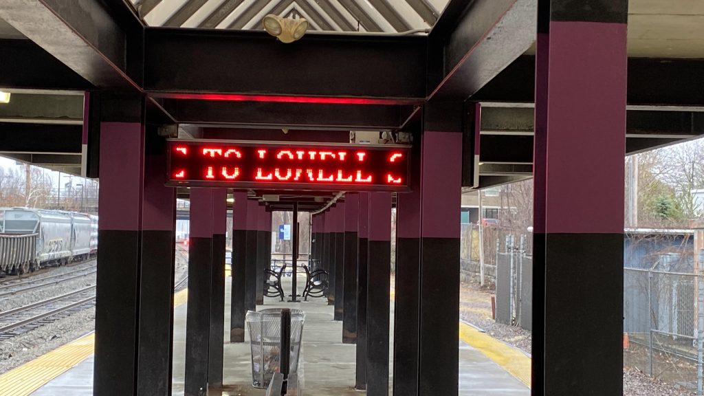 I don’t like this.I REALLY don’t like this!TO LOWELLNorthbound towards Nashua & Concord (NH)!Southbound with freight cars. And, yes, it’s mostly low-level.Helvetica!