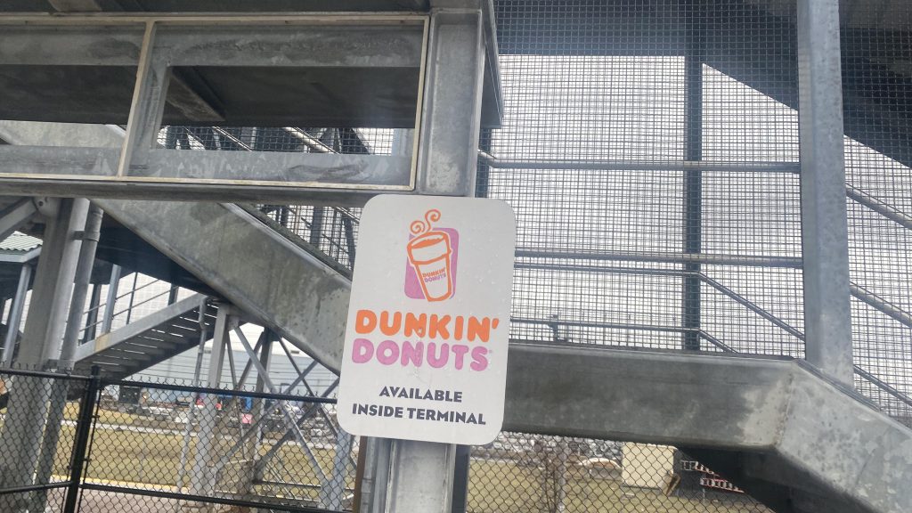 In terms of amenities, they don’t really exist. You got a shelter on the inbound side, but that’s it. Benches and wastebaskets also exist, and there’s a Dunkin’ nearby! There’s also a couple of bus connections as well.