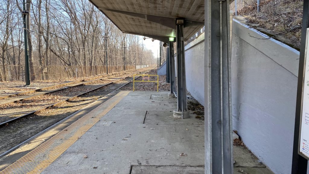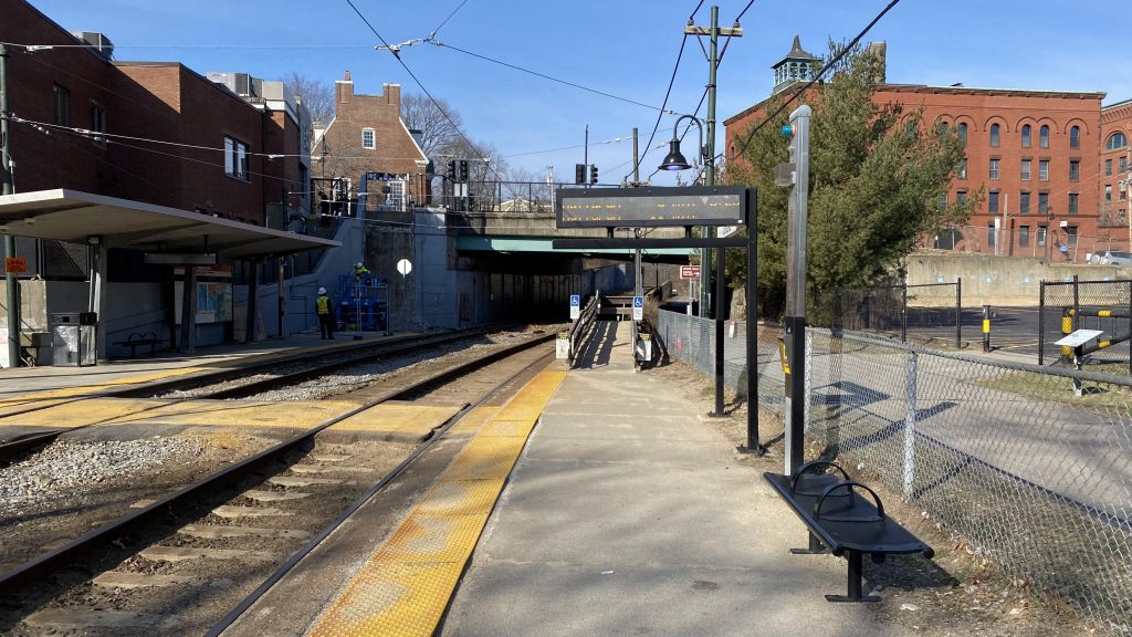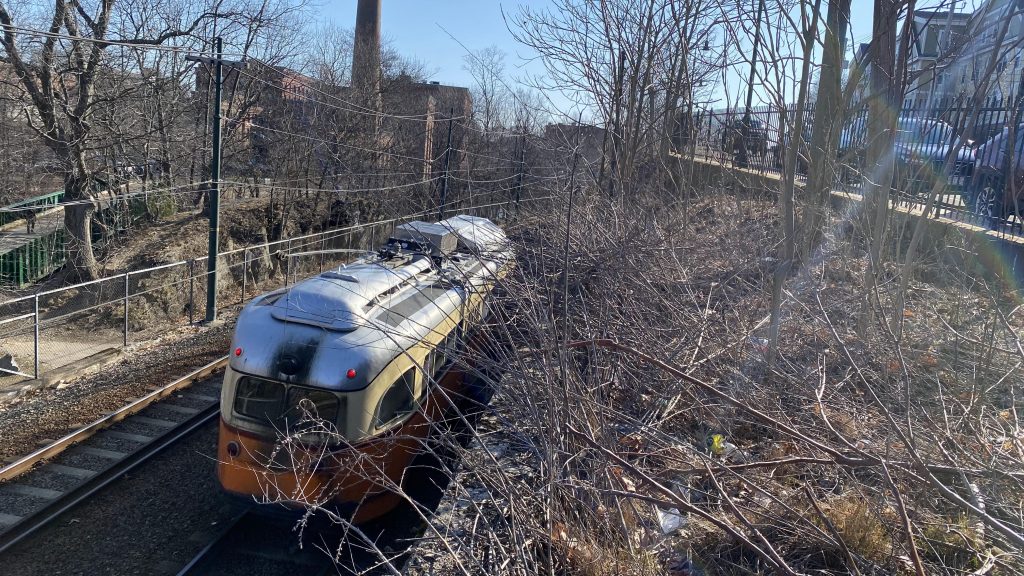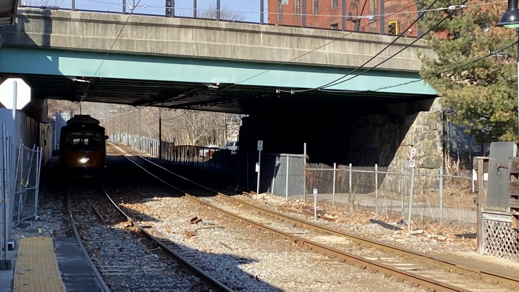 Walking up about a quarter-mile, brings us to Kendall’s other crowned jewel. However, it’s more a rite of passage for Boston-area railfans, as it’s the Grand Junction used for nonrevenue equipment moves between the northside and southside lines. Sadly, no trains came by. Buses pretty much dump off on the street next to the station.