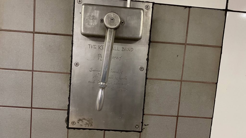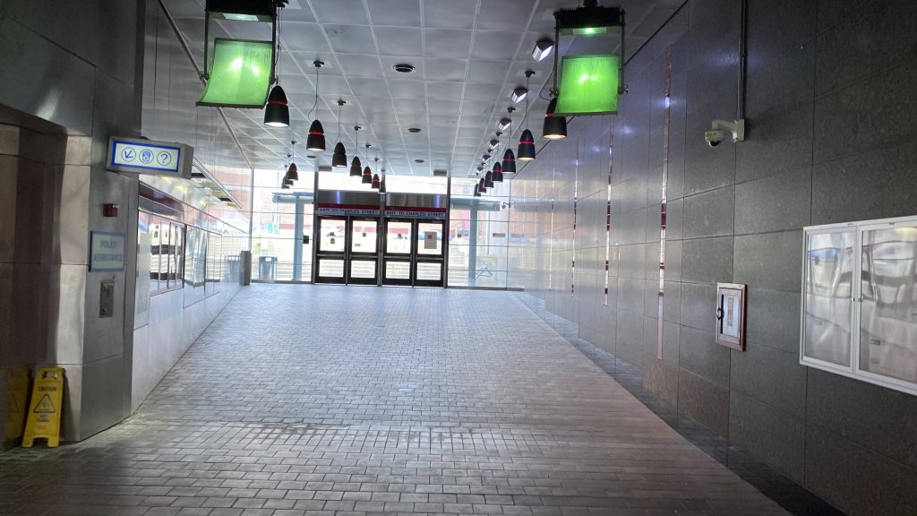 So, I start swinging the lever. “You gotta go a little harder!” a passerby said, so I did, and then he mentioned to look behind and that’s when I noticed the hammers were swinging as I was swinging the lever. Cool! I think there’s supposed to be some kind of music with windchimes, but I don’t think it was working correctly. Here’s a video that demos it, though! As for the headhouses, they correspond to each platform, so go in the right way! The inbound headhouse is also much newer, having just opened within the last month (as of me writing this), and I’m sure the outbound headhouse is set to get a similar facelift.