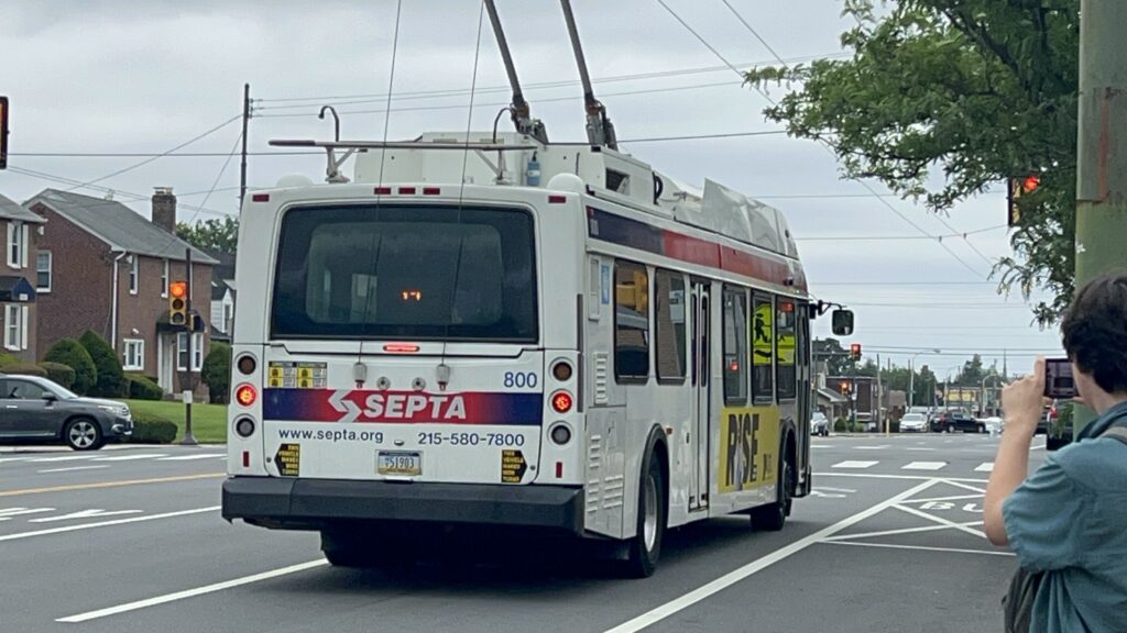Ad for SEPTA Metro rebrandingAn E40LFR!The layover facilityA bus nearbyA bus boardingTHE PROPHECY!!! Also, hi Honaj.A bus laying overThe loopSomeone boarding the busHi!