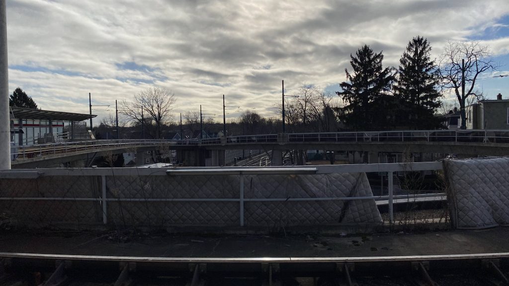 Getting off the train, it’s clear that this is a park & ride in the middle of what may as well be NIMBY hell. You got two parking lots, one on either side of the tracks. There’s also no ADA compliant crossover, so there’s that, and the platforms and stairs look like they’re falling apart. Uhhhhh…..