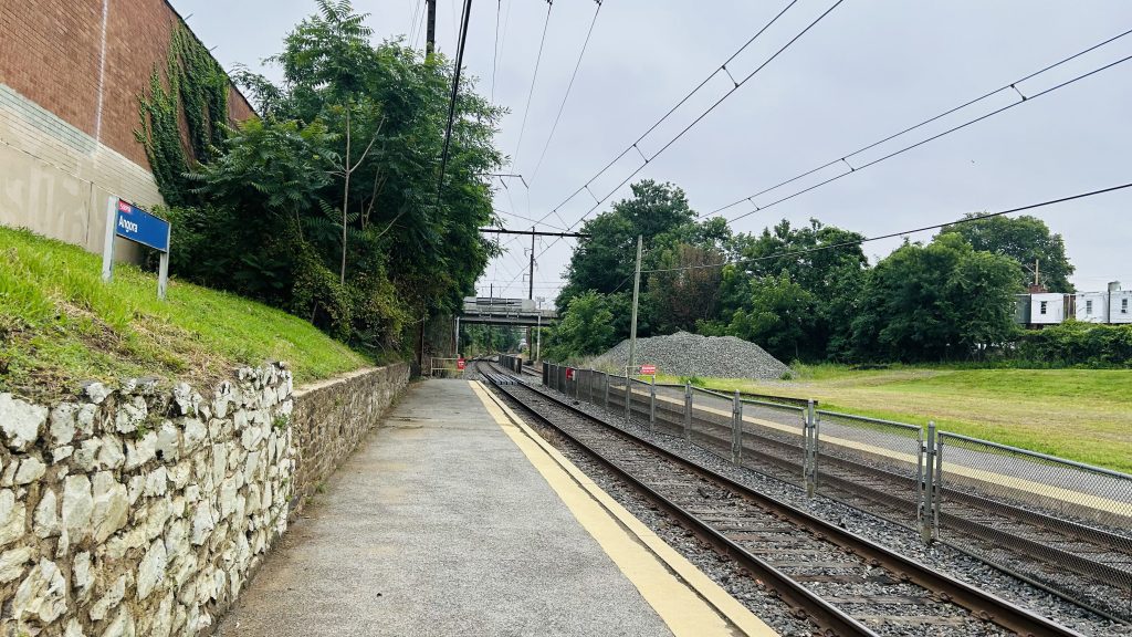 Angora Station is located on the outer fringes of southwestern Philadelphia, on SEPTA’s Media/Wawa commuter rail line, in the namesake neighborhood of Angora. It consists of rather little in the way of amenities (not even seating or a bus shelter?!), and even less in the way of accessibility. In fact, the only thing remotely ADA accessible about this (quite bluntly: shitty!) station is the bus connections, being the 46 between 63rd/Malvern and this station (where it turns!), and the 63 between Overbrook Station and Columbus Commons in South Philly. You might get a transit-accessible pile of rocks, if you’re lucky! As for inaccessible connections, you have the T2 trolley line on Baltimore Ave., of course. And, what amenities DOES this station have? …a Key Card machine. But, it’s not just any ordinary Key Card machine – because unlike, say, the ticketing machines on the LIRR, NJT, or Metro-North, these DON’T EVEN DISPENSE PAPER TICKETS! WAY TO GO, SEPTA!!! But, it’s also SEPTA. Of course they’ll do things in a rather weird and esoteric way. And, I think that’ll become abundantly clear in some coming entries within SEPTA territory… *wink wink, nudge nudge*